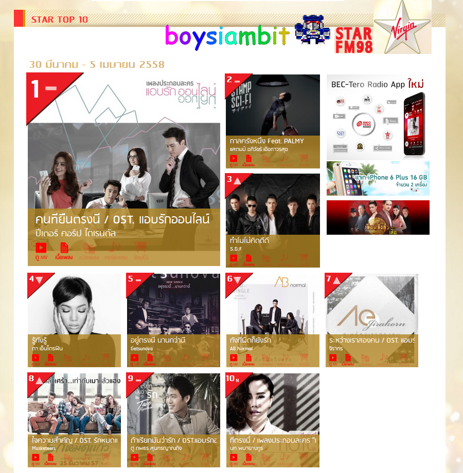[Mp3]-[Chart] ชาร์ทเพลงไทย ฟังสบาย เพราะๆ ชิลล์ๆ Virgin Star FM 98 Top 10 ประจำวันที่ 30 มีนาคม - 5 เมษายน 2558